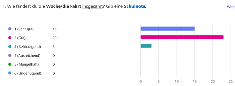 Besonders positiv hervorgehoben wurde von den Schülerinnen und Schülern das Gemeinschafts-erlebnis. Trotz der Teilnahme von Lernenden aus sieben verschiedenen Klassen entwickelte sich während der Woche ein Zusammengehörigkeitsgefühl.
