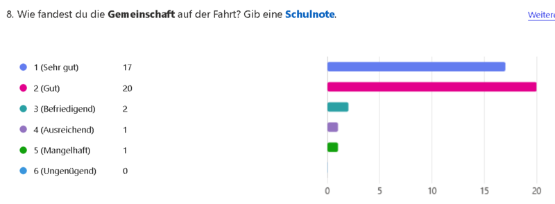 Besonders positiv hervorgehoben wurde von den Schülerinnen und Schülern das Gemeinschafts-erlebnis. Trotz der Teilnahme von Lernenden aus sieben verschiedenen Klassen entwickelte sich während der Woche ein Zusammengehörigkeitsgefühl.