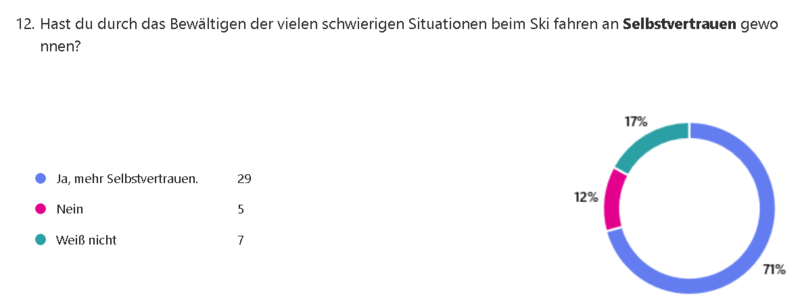 Zudem berichteten viele Teilnehmende, dass sie durch das Skifahren an Selbstvertrauen gewonnen haben, wie die Rückmeldungen (siehe unten) zeigen.